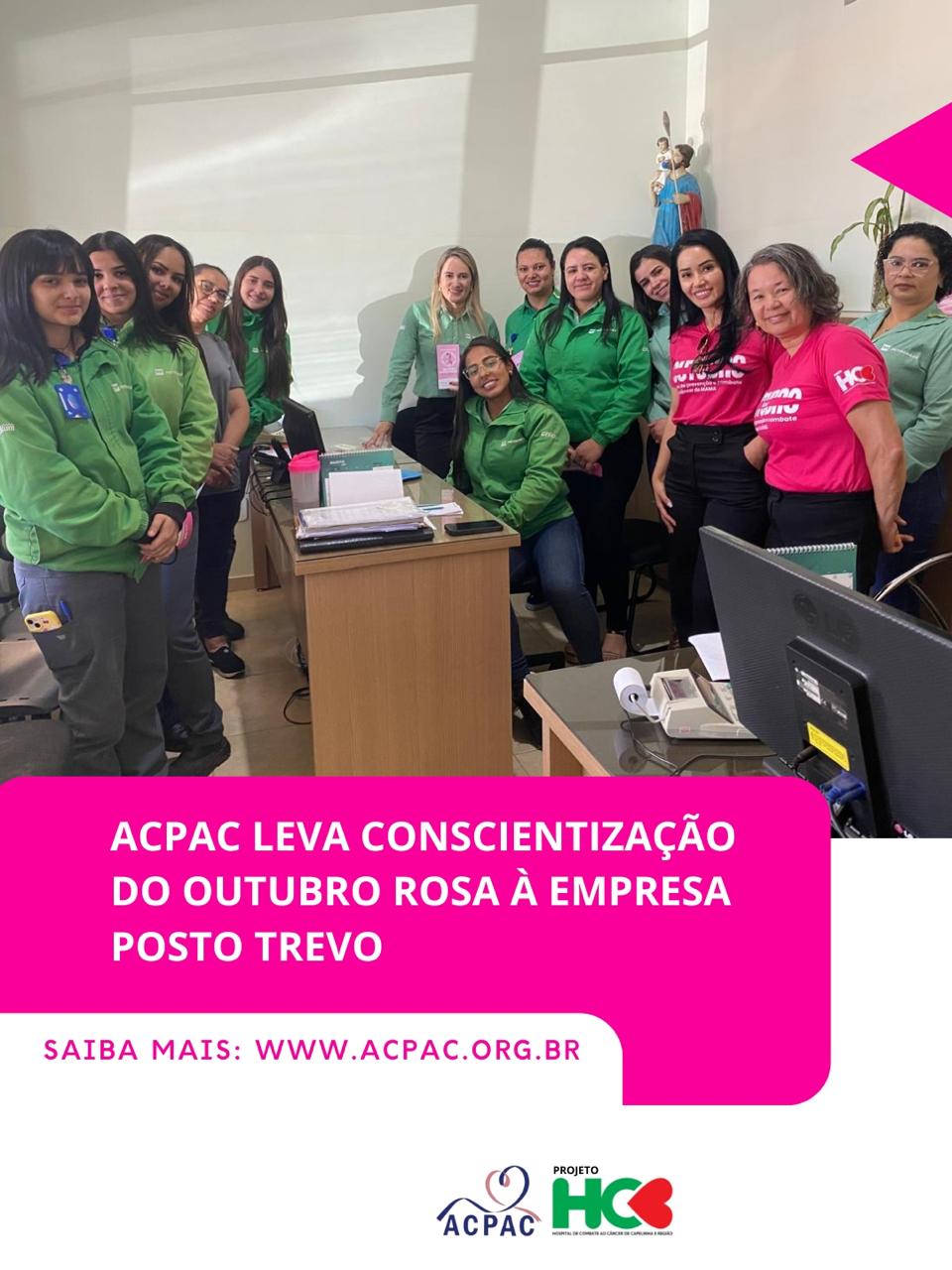 A ACPAC realiza palestras com foco na prevenção, conscientização e informação sobre o câncer, promovendo conhecimento, cuidado e diálogo com a comunidade. As ações educativas fortalecem a importância do diagnóstico precoce, do autocuidado e do apoio ao paciente oncológico e seus familiares.