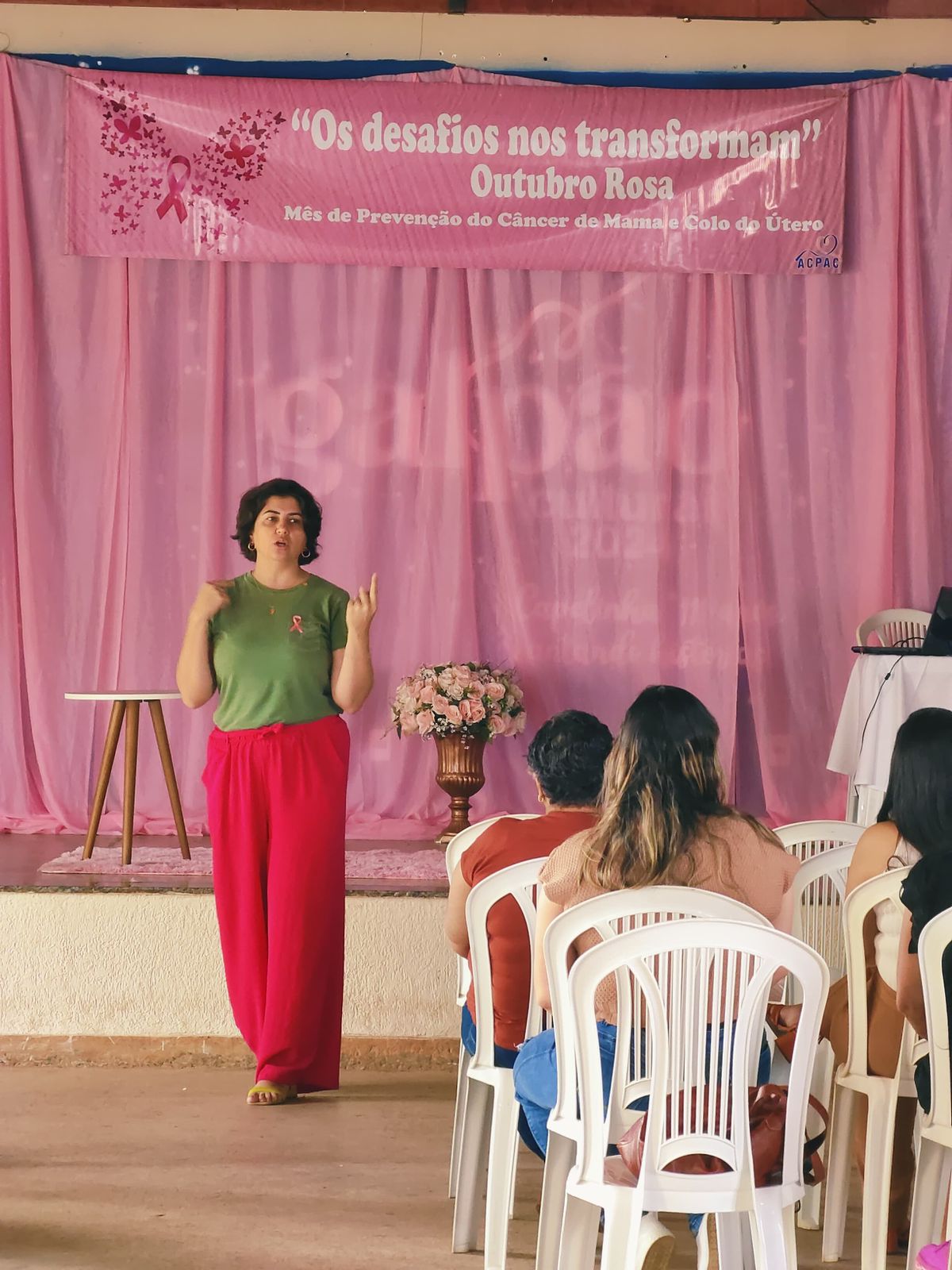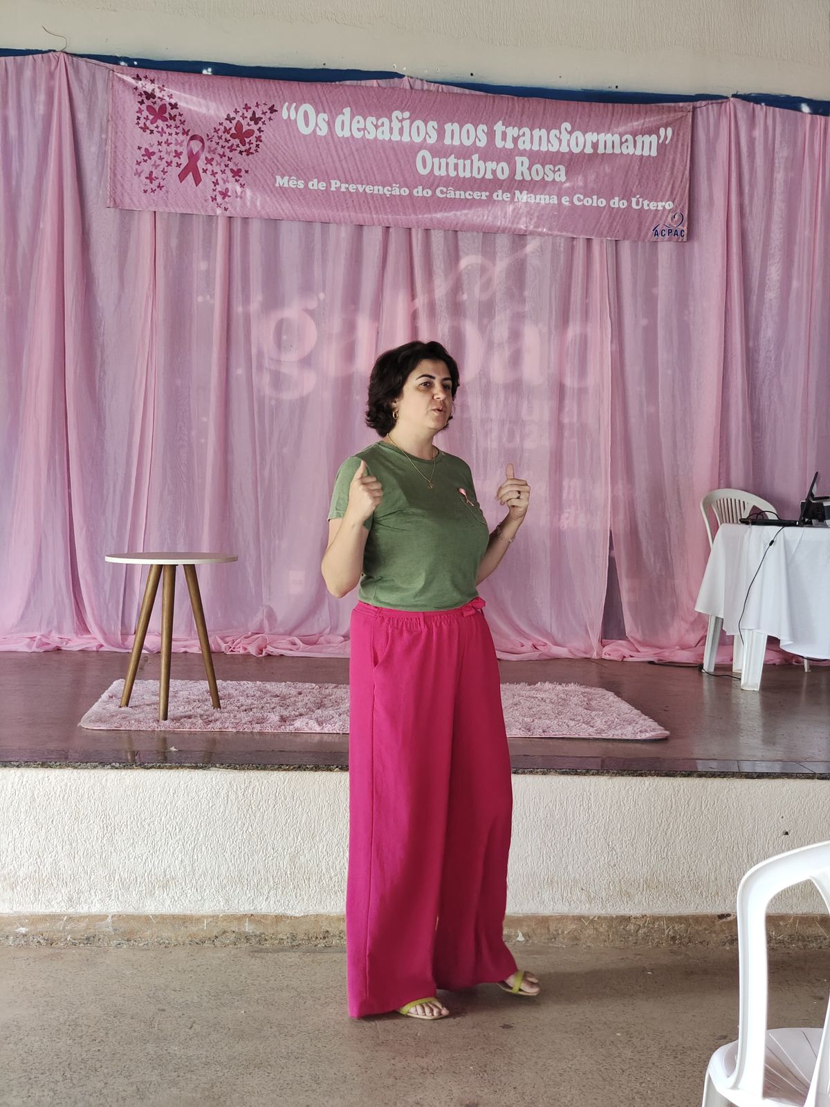 Em 2024, a ACPAC promoveu o Evento Saúde Rosa como parte da programação do Outubro Rosa. A ação reuniu profissionais e comunidade para orientações, atividades educativas e serviços voltados à prevenção e ao diagnóstico precoce do câncer de mama, reforçando o compromisso da instituição com a saúde da mulher.